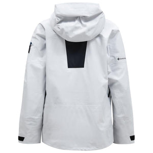 Adjustable drawcord at bottom hem, Adjustable sleeve hem with velcro straps, Articulated sleeves, Cohæsive™ cord hardware at hood, Detachable snow skirt with snap-in ski pant system, Elastic wrist gaiters with thumbhole, Exposed zippers are YKK AquaGuard®, Fixed Hood, Full front, 2-way YKK AquaGuard® zipper, Fully seam sealed, GORE-TEX 3L C-KNIT™, GORE-TEX Stretch, GORE-TEX stretch panel in back and hood, Goggle wiper, Hanger loop inside neck, Laminated brim, Made without intentionally added PFAS, P-logo rubber badge at sleeve, Peak Performance embroidery at chest, RECCO® Rescue System reflector, RECCO® Technology, Radio pocket with antenna exit, Ski helmet compatible hood, Soft fleece lined chin protection, Two-way (height and width) adjustable hood, Zippered chest pockets, Zippered hand pockets, Zippered inner pocket, Zippered ski pass pocket, Zippered ventilation under sleeves