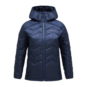Adjustable drawcord at bottom hem, Body - 133 gr/m2, Chinguard, Elastic binding at cuffs, Fixed Hood, Full front with reversed YKK coil zipper, Hanger loop at back, Hood - 60 gr/m2, Lightweight recycled polyester ripstop, wind and water resistant, Made without intentionally added PFAS, One-way (width) adjustable hood, P-logo embroidery at sleeve, Peak Performance embroidery at chest, Quilted in P-logo pattern, Recycled fibers, Recycled insulation, Repair patch included, Synthetic sheet insulation., Zippered hand pockets