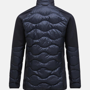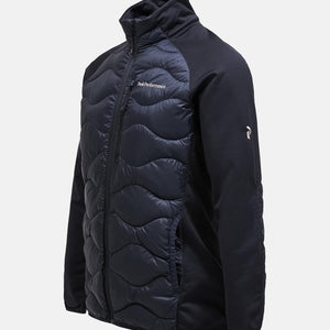 Chinguard, Duck down, 700 fill power, 90/10 down/feather, Elastic binding at bottom hem, Elastic cuffs, Full front with reversed YKK coil zipper, Hanger loop outside neck, Hybrid, Jersey panels, Lightweight, 42 gsm 20D ripstop. Windproof and repels light rain, Made without intentionally added PFAS, Midweight, 271 gsm flat fleece, soft brushed back that traps warm air. Dries quickly, Open hand pockets, P-logo embroidery at sleeve, Peak Performance embroidery at chest, Quilted in our iconic Helium pattern, Responsible down standard, Soft, midweight polyester fleece with brushed back, Stand up collar, Sterilization Permit no. PA 9900(CN), Ultralight nylon ripstop, wind and water resistant, Zippered chest pocket