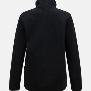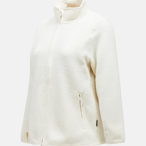 Binding along handpocket opening, Double layer collar, Elastic binding along collar, center front zipper, bottom hem and cuffs, Elastic binding at hem and cuffs, Elastic cuff with thumbhole, Full front with 2-way YKK Vislon® zipper, Made without intentionally added PFAS, Narrow flatlock covering seams, Peak Performance flag label, Soft pile with jersey back, Stand up collar, Zippered hand pockets