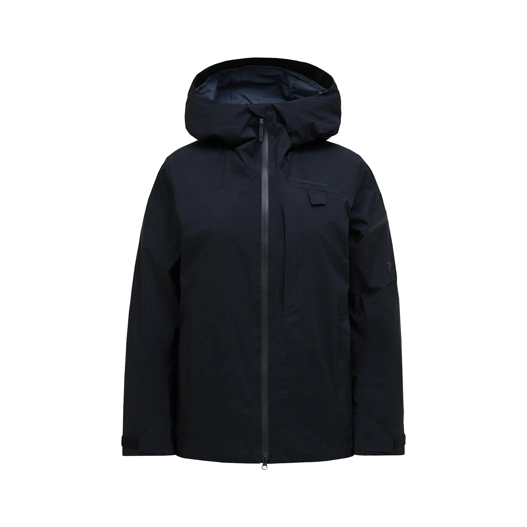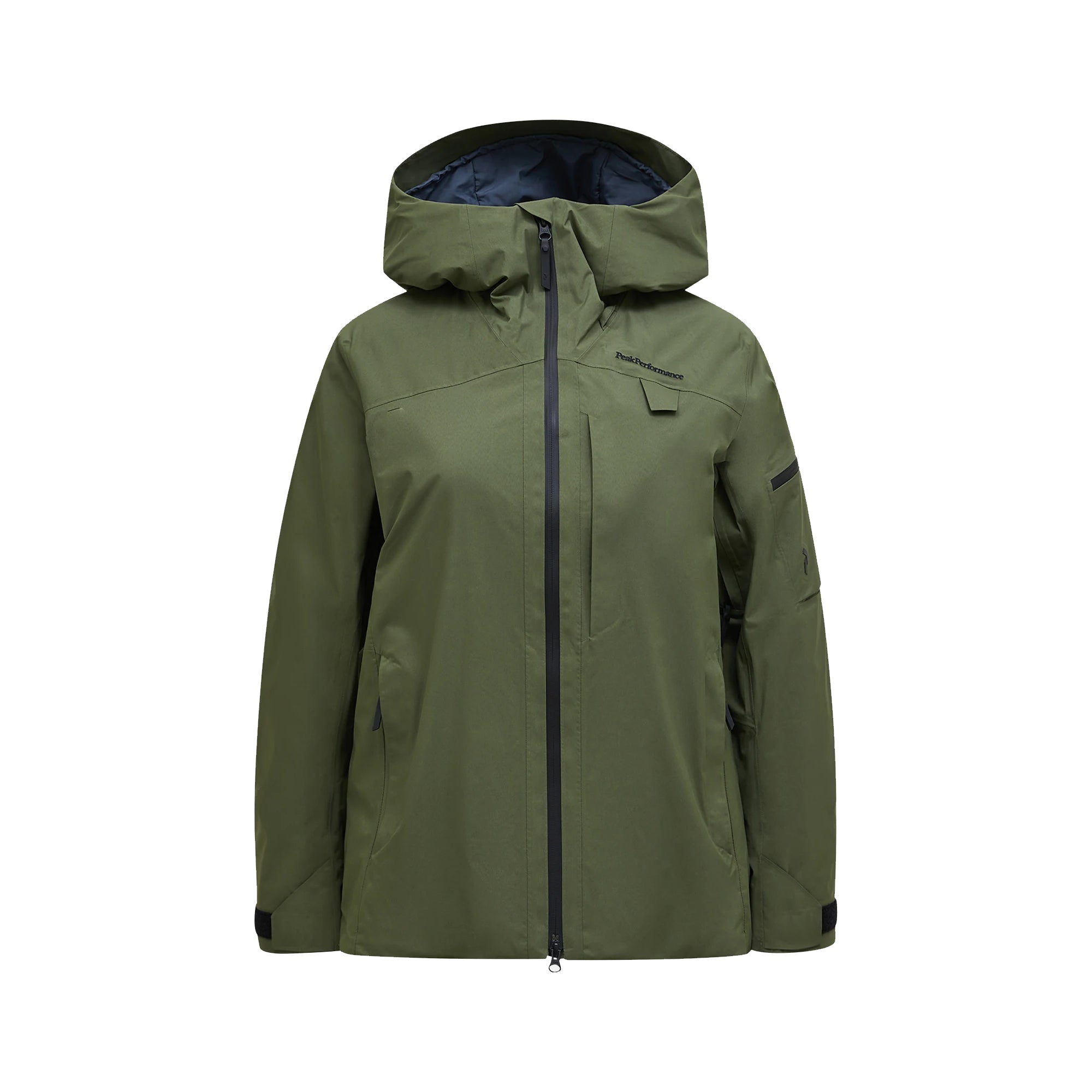 Adjustable drawcord at bottom hem, Adjustable sleeve hem with velcro straps, Articulated sleeves, Body - 60 gr/m2, Cohæsive™ cord hardware at hood, Elastic wrist gaiters with thumbhole, Exposed zippers are YKK AquaGuard®, Fixed Hood, Full front, 2-way YKK AquaGuard® zipper, Fully seam sealed, GORE-TEX 2L Insulated, Goggle wiper, Hanger loop inside neck, Hood - 40 gr/m2, Laminated brim, Made without intentionally added PFAS, P-logo rubber badge at sleeve, Peak Performance embroidery at chest, Pinneco Mantle™ insulation, RECCO® Rescue System reflector, RECCO® Technology, Radio pocket with antenna exit, Ski helmet compatible hood, Sleeves - 40 gr/m2, Soft fleece lined chin protection, Two-way (height and width) adjustable hood, Zippered chest pocket, Zippered hand pockets, Zippered inner pocket, Zippered ventilation under sleeves