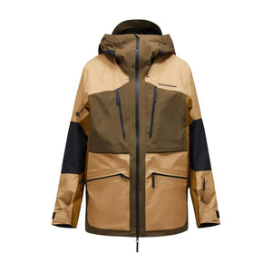Adjustable drawcord at bottom hem, Adjustable sleeve hem with velcro straps, Articulated sleeves, Cohæsive™ cord hardware at hood, Detachable snow skirt with snap-in ski pant system, Elastic wrist gaiters with thumbhole, Exposed zippers are YKK AquaGuard®, Fixed Hood, Full front, 2-way YKK AquaGuard® zipper, Fully seam sealed, GORE-TEX PRO, GORE-TEX stretch panel in back and hood, Goggle wiper, Hanger loop inside neck, Inner mesh stash pockets, Laminated brim, Made without intentionally added PFAS, P-logo rubber badge at sleeve, Peak Performance embroidery at chest, RECCO® Rescue System reflector, RECCO® Technology, Ski helmet compatible hood, Soft fleece lined chin protection, Three-way (height, width and volume) adjustable hood, Zippered chest pocket, Zippered hand pockets, Zippered inner pocket, Zippered ski pass pocket, Zippered ventilation under sleeves
