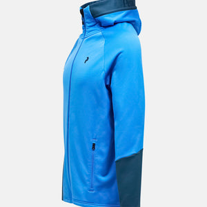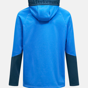 Full front with YKK coil zipper, Made without intentionally added PFAS, P-logo print at chest, Peak Performance print on hood, Single layer hood, Soft fleece lined chin protection, Zippered hand pockets
