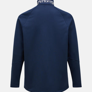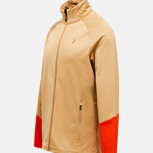 Full front with YKK coil zipper, Made without intentionally added PFAS, Midweight, 271 gsm flat fleece, soft brushed back that traps warm air. Dries quickly, P-logo print at chest, Peak Performance print on collar, Soft fleece lined chin protection, Stand up collar, Zippered hand pockets
